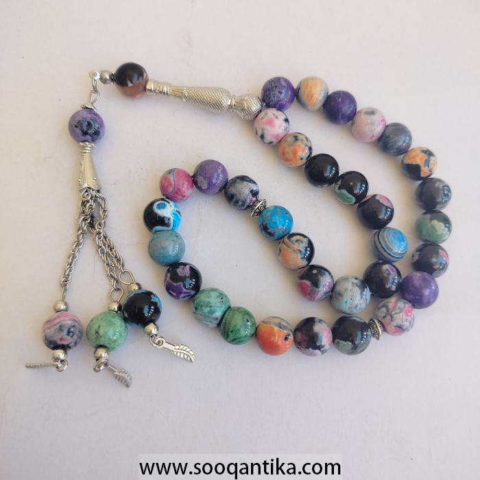 مسبحة عقيق ملون بلياردو جميلة جدا 33 حبة
